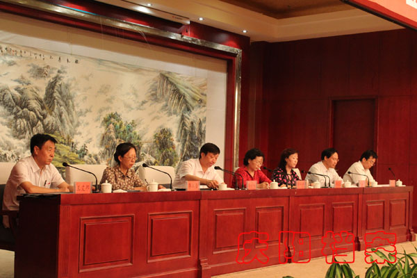 会上,中央档案馆国家档案局政策法规司司长、新闻发言人郭嗣平围绕档案安全和档案服务向各市(州)与会代表作了专题辅导报告。甘肃省档案局局长张蕊兰出席会议并讲话。庆阳市委常委、秘书长樊得智出席会议并致辞。中央档案馆国家档案局副巡视员李淑香,甘肃省档案局纪检组长、甘肃省档案学会理事长孙小林、庆阳市人大常委会副主任雷沫里、庆阳市政协副主席郭晓霞出席会议。 大会会场 大会主席台 中央档案馆国家档案局政策法规司司长郭嗣平作辅导报告 省档案局局长张蕊兰出席并讲话 会议现场 表彰奖励 与会代表到庆阳市档案馆考察