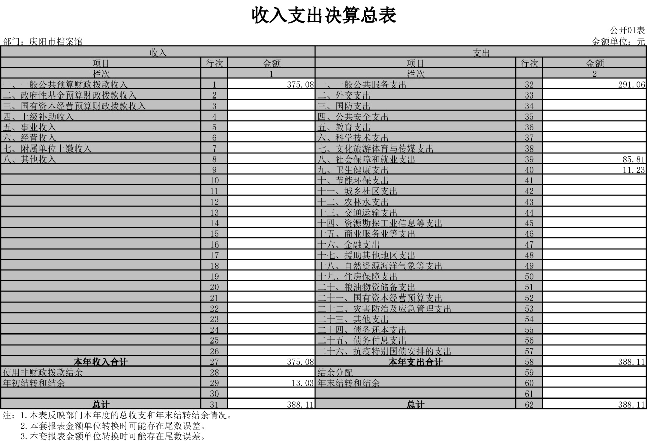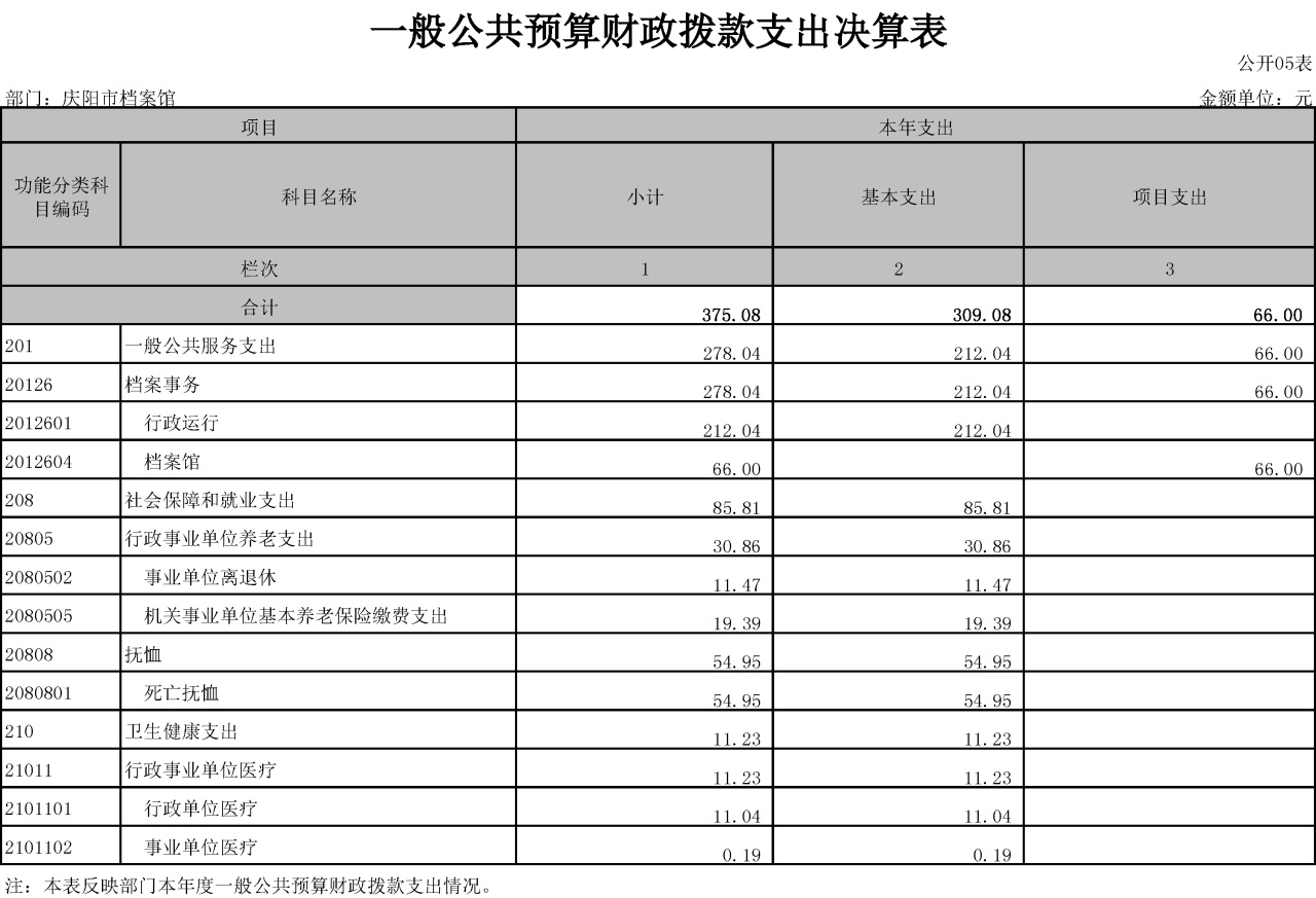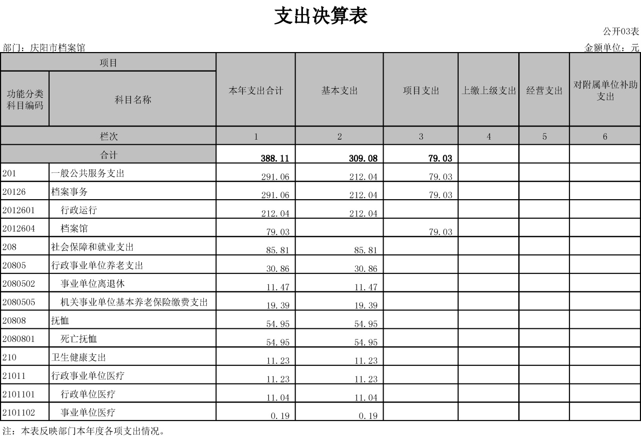 庆阳市档案馆2021年度决算公开说明