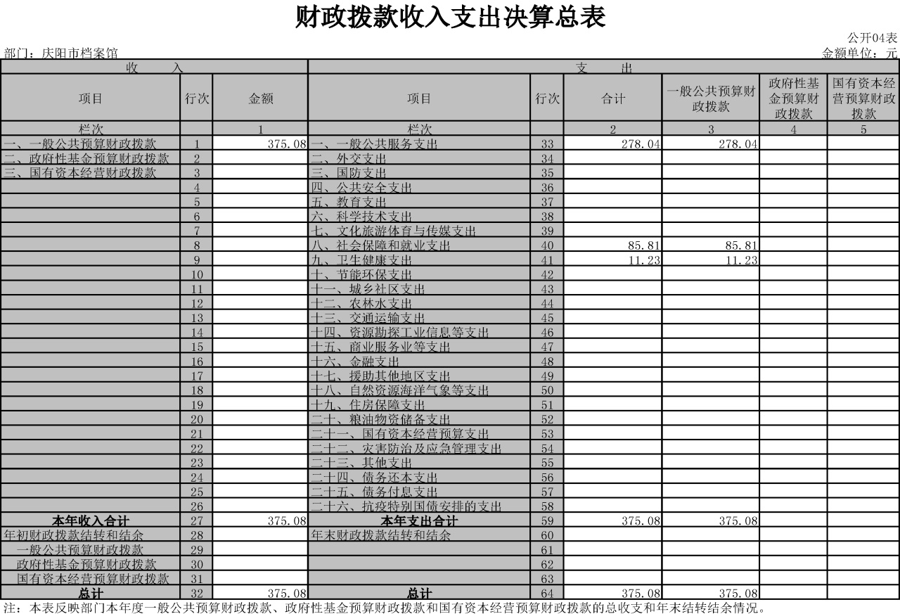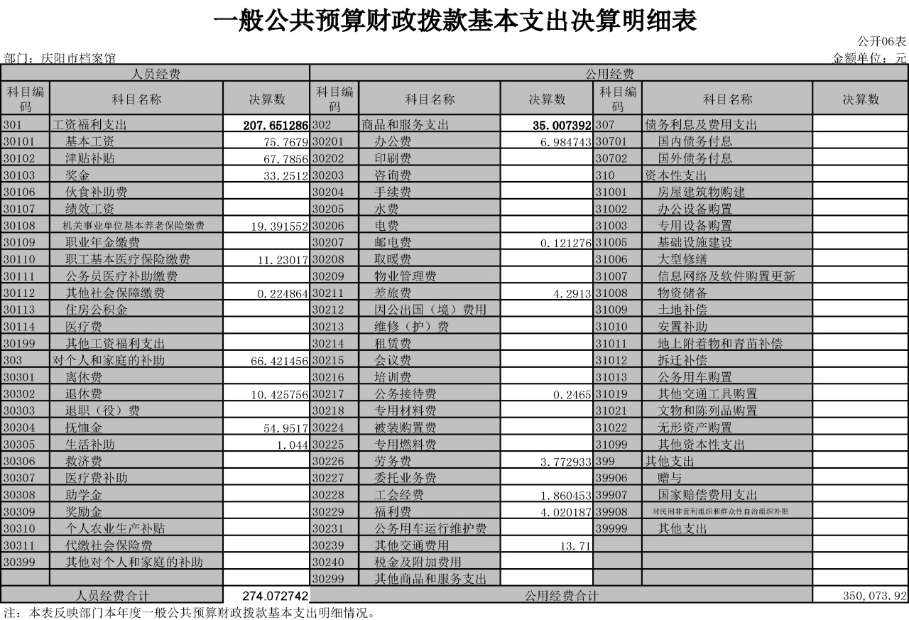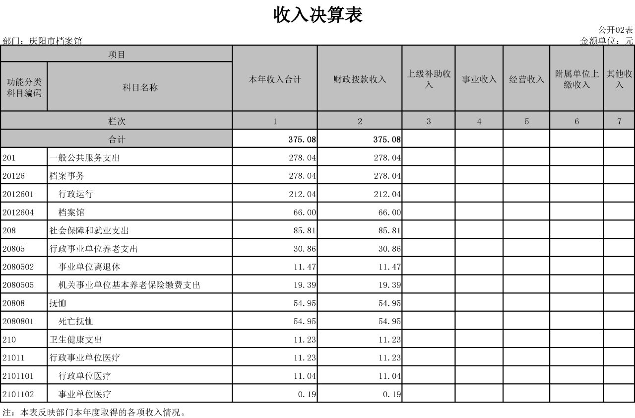 庆阳市档案馆2021年度决算公开说明